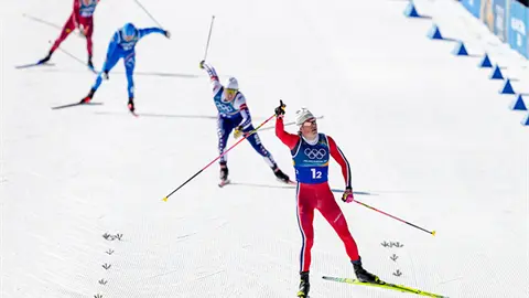 "Obviamente es muy satisfactorio lograr que esto suceda", indicó Klaebo, de 29 años. "El sprint por equipos es una de las pruebas más divertidas, pero también una de las más duras". Klaebo ha ganado todas las carreras en las que ha participado en estos Juegos, al romper el récord de los Juegos Olímpicos de Invierno en el relevo 4 x 7,5 kilómetros del domingo.