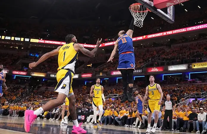 INDIANÁPOLIS.- Karl-Anthony Towns anotó 20 de sus 24 puntos en el último cuarto y Jalen Brunson añadió 23 unidades para que los Knicks de Nueva York remontaran de una desventaja de 20 tantos para vencer 106-100 el domingo a los Pacers de Indiana en el tercer duelo de las finales de la Conferencia Este.