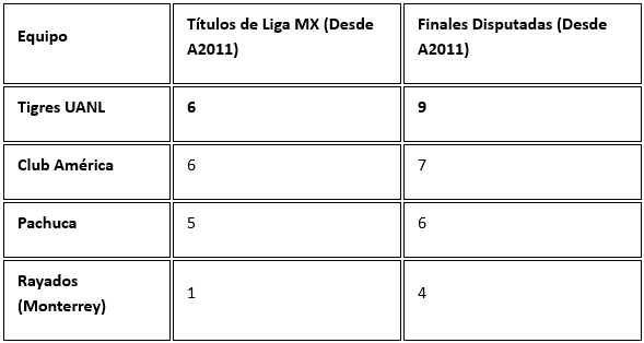 Al analizar los datos duros desde el Apertura 2011, Tigres se alza como la institución más potente: