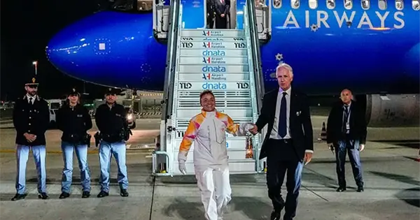 El fuego fue transportado en una pequeña linterna a bordo de un vuelo de ITA Airways entre las capitales griega e italiana.