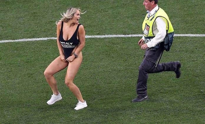 La modelo Kinsey Wolanski trató de asaltar la final de la Copa América entre Brasil y Perú, igual que lo hizo hace unos meses en la final de la Champions League entre Liverpool y el Tottenham. Pero esta vez falló.