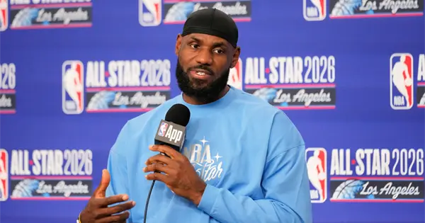 James habló con los reporteros antes del partido del domingo porque la liga le ha permitido saltarse las actividades del sábado los últimos años. James dijo el jueves que planeaba pasar su tiempo libre extra en casa recuperándose de una temporada en la que ya se ha perdido 18 partidos por diversos problemas de salud, incluida una ciática que lo dejó fuera de los primeros 14 partidos de los Lakers.
