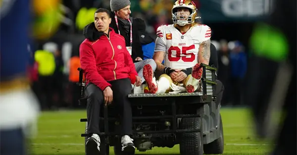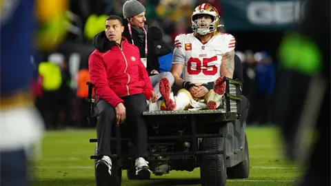 FILADELFIA (AP) — El ala cerrada de los 49ers de San Francisco George Kittle fue retirado del campo con una lesión en el tendón de Aquiles derecho al final de la primera mitad del partido de la ronda de comodines de la Conferencia Nacional en Filadelfia.