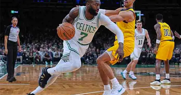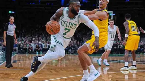 BOSTON.- Jaylen Brown anotó 14 de sus 31 puntos, la mayor cantidad del juego, en el último cuarto y los Celtics de Boston remontaron un déficit de 20 puntos en la segunda mitad para vencer el lunes 103-95 de los Pacers de Indiana.