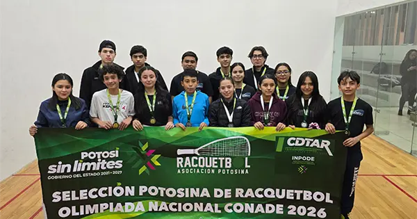 Con gran participación y un alto nivel competitivo, del 3 al 6 de febrero se llevó a cabo el Campeonato Estatal Selectivo de Racquetbol, evento que definió a los representantes potosinos que competirán en la Olimpiada Nacional CONADE 2026, cuya etapa nacional tendrá como sede el estado de San Luis Potosí.