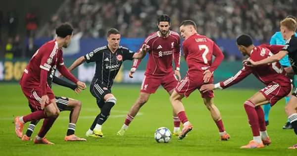 Rasmus Kristensen dio la ventaja al equipo local a los 26, pero Liverpool igualó nueve minutos después mediante Hugo Ekitike, un exjugador del Eintracht que superó en velocidad a tres de sus antiguos compañeros antes de batir por debajo a Michael Zetterer. Ekitike no celebró, pero levantó las manos en un gesto de disculpa.