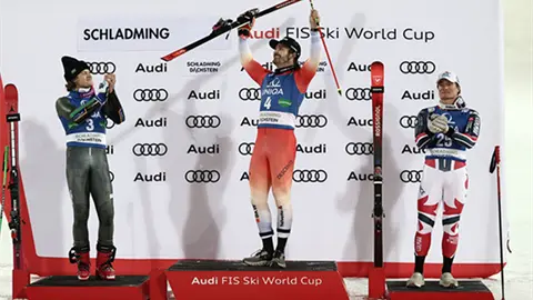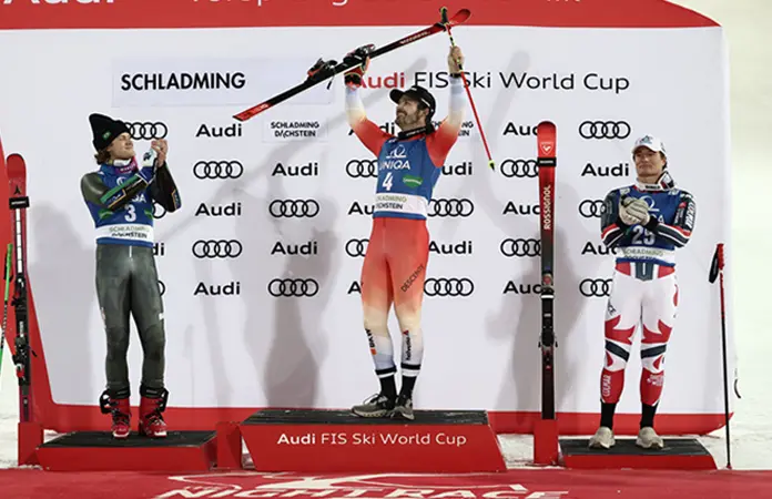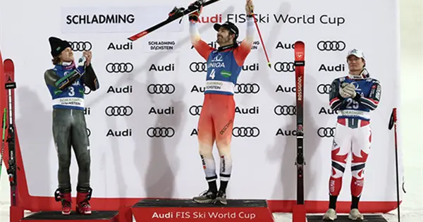 Meillard ganó la carrera del martes bajo los reflectores en la helada pista de Planai por 0,73 segundos, logrando su segunda victoria de la temporada en la Copa del Mundo y la novena en total.