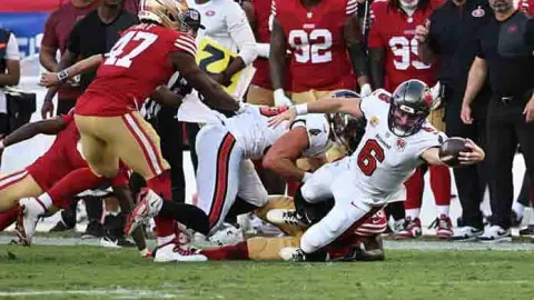 Los 49ers, plagados de lesiones (4-2), perdieron al apoyador cuatro veces All-Pro Fred Warner por una grave lesión en el tobillo derecho en el primer cuarto. El tobillo de Warner pareció girarse de lado después de que un par de jugadores cayeran sobre él.