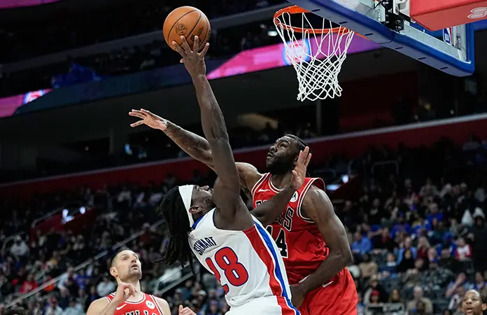 Chicago ganaba por 77-76 al final del tercer periodo, pero Detroit anotó los primeros siete puntos del cuarto para ponerse arriba 83-77.