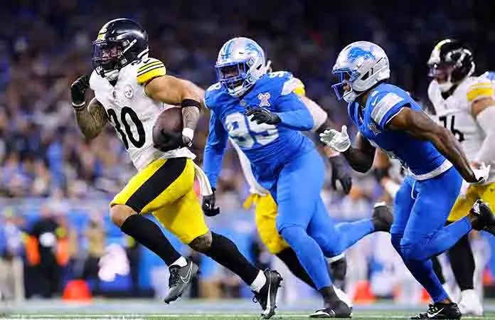 Jaylen Warren tuvo dos acarreos de touchdown de 45 yardas en el último cuarto y terminó con un récord personal de 143 yardas para los Steelers, quienes aplastaron a sus oponentes con 230 yardas por tierra, por 15 de los Lions.