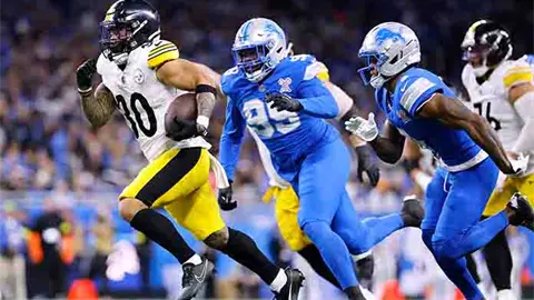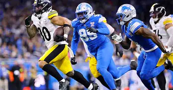 DETROIT.- Los Steelers de Pittsburgh llevaron a los Lions de Detroit al borde de la eliminación de los playoffs el domingo, manteniéndose firmes para una victoria de 29-24 cuando el touchdown de Jared Goff en la última jugada fue anulado por un castigo de interferencia de pase ofensivo de Amon-Ra St. Brown.