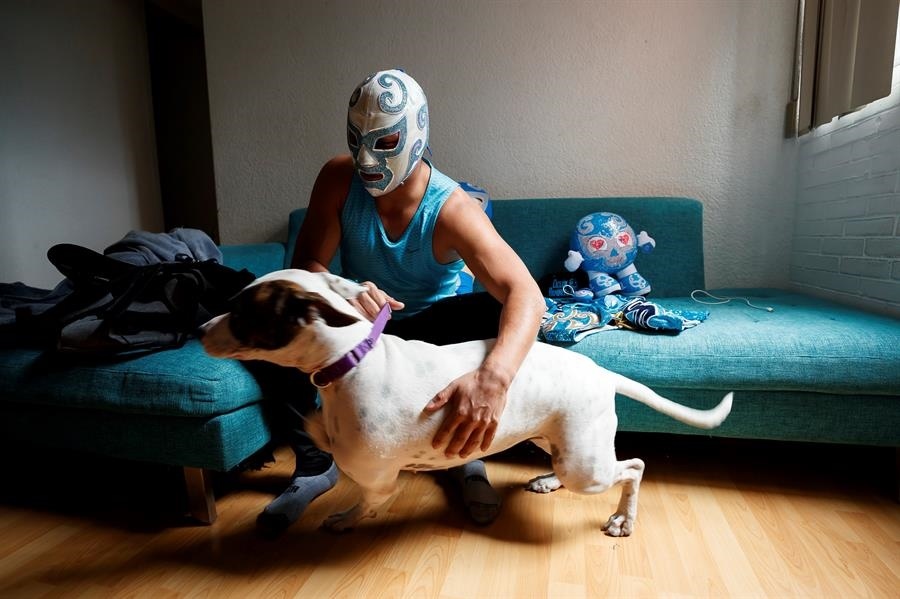 En el interior de un pequeño departamento en la popular zona de la Merced, en el centro de la Ciudad de México, la magia de la lucha libre, ese deporte-espectáculo altamente consumido en este país, se percibe por doquier.