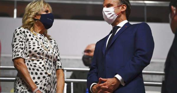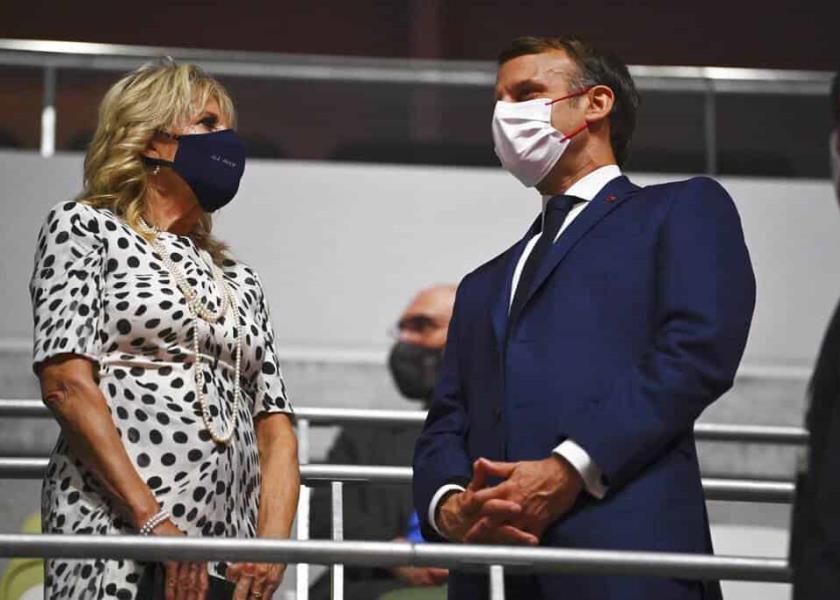 El presidente de Francia, Emmanuel Macron, y la primera dama de Estados Unidos, Jill Biden, fueron las personalidades más destacadas en el palco del Estado Olímpico de Tokio durante la ceremonia de inauguración de los Juegos, en la que la presencia de dignatarios extranjeros se redujo al mínimo.