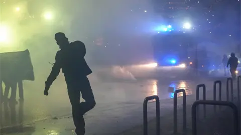 La policía contuvo a los manifestantes violentos, que parecían intentar llegar al pabellón olímpico de hockey sobre hielo de Santagiulia, después del enfrentamiento. Para entonces, la protesta pacífica más grande, que incluía familias con niños pequeños y estudiantes, se había dispersado.
