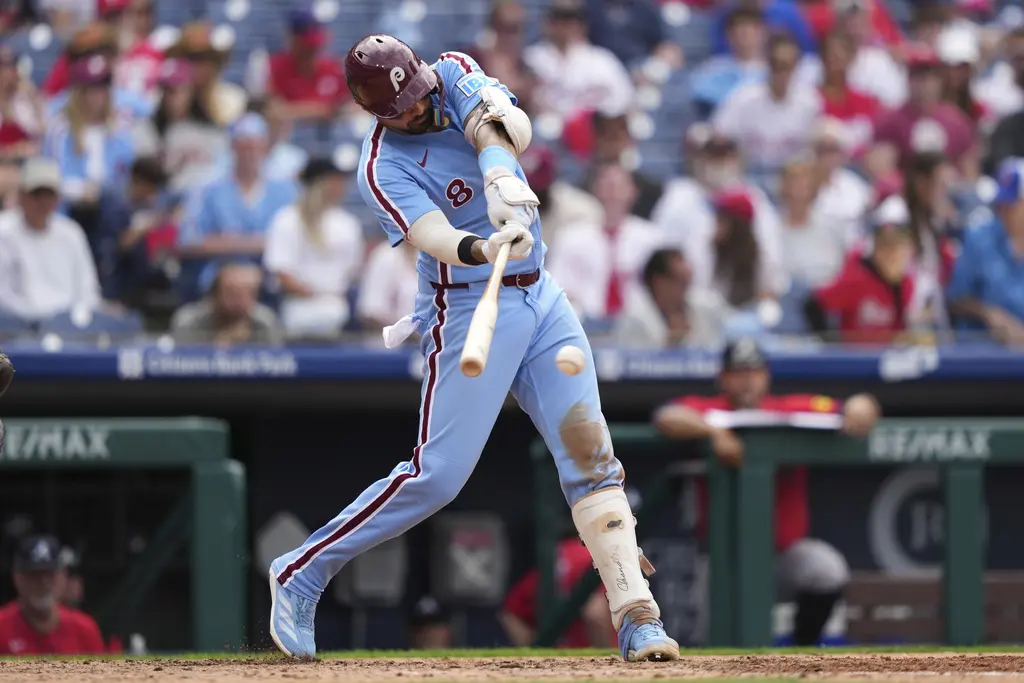 La estrella de los Filis, Bryce Harper, se perdió el juego, dos días después de que recibió un golpe en el codo derecho con un lanzamiento de 95,3 mph de Spencer Strider. Los Filis, líderes de la División Este de la Liga Nacional, ganaron por vigésima tercera vez en 29 juegos y propinaron a los Braves su sexta derrota en siete juegos.