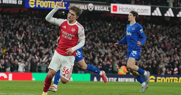 En un final dramático en el Emirates Stadium, Viktor Gyokeres anotó en el minuto 89 antes de que Dowman recogiera el balón a mitad de campo en su propia mitad después de que se despejara un córner, regateara a dos jugadores y se escapara para empujarla a una portería vacía. El portero del Everton, Jordan Pickford, quedó varado arriba tras haber subido a rematar un córner.