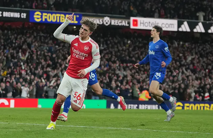 El Arsenal se mantuvo al mando de la lucha por el título de la Liga Premier con una victoria 2-0 sobre el Everton el sábado, con el gol en solitario del joven de 16 años Max Dowman en el tiempo de descuento que lo convirtió en el goleador más joven de la historia de la competición.