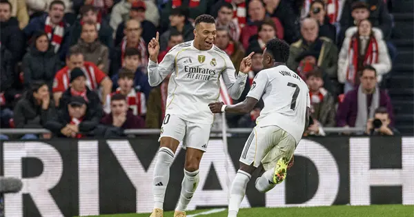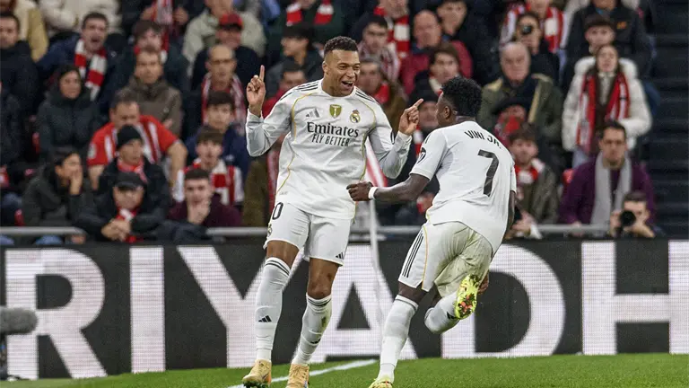 Kylian Mbappé noqueó al Athletic en San Mamés en una noche mágica de la estrella francesa con dos goles y una asistencia para el 0-3 final y disipó la crisis con la que el Real Madrid, que había empatado los tres encuentros ligueros anteriores y perdido el liderato en beneficio del Barcelona, había llegado a Bilbao.