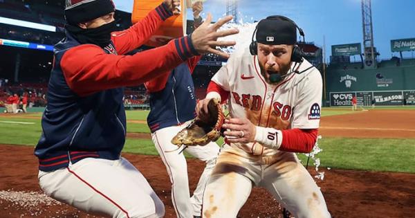 Boston se recuperó de un déficit de 2-1 en el octavo episodio pero volvió a estar en desventaja tras el elevado de sacrificio de George Springer en el décimo. El mexicano Jarren Durán inició la parte baja con un sencillo para empujar al corredor automático. Después de que Durán fue atrapado robando, los Medias Rojas llenaron las bases con un sencillo del dominicano Rafael Devers y dos bateadores golpeados.