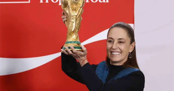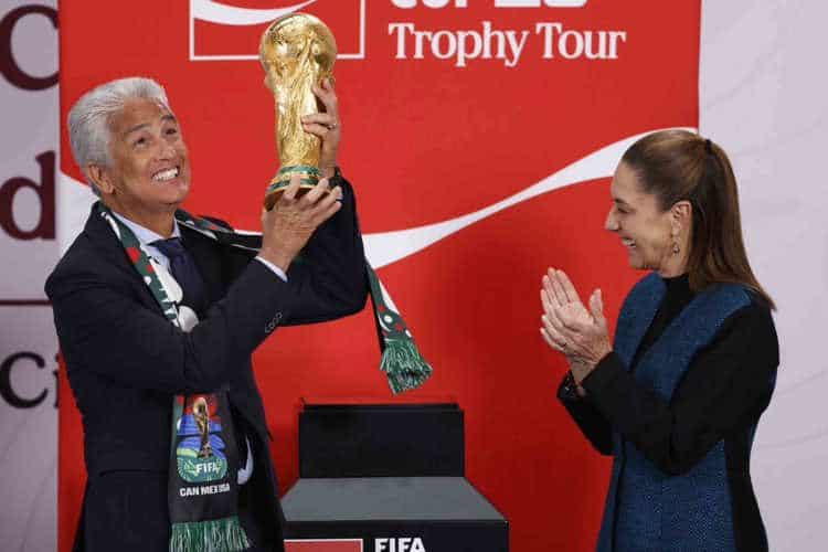A cien días de que ruede el balón en la Copa del Mundo que organizarán de manera conjunta México, Estados Unidos y Canadá, el brillo del trofeo más codiciado del futbol mundial iluminó este martes Palacio Nacional.