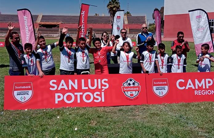 Desde el antiguo Estadio Plan de San Luis, la primaria Moctezuma Ilhuicamina se corona campeón del torneo infantil de fútbol Scotiabank 2022, al vencer a sus rivales Cristóbal Colón, Rafael Ramírez y Herculano Cortés. Este domingo se llevó a cabo la fase final, la ronda de cuartos de final inicio con el partido de Herculano Cortés ganando 4 a 2 ante Rosario Castellanos, Moctezuma Ilhuicamina le gano 4-0 a Cristóbal Colón, Benito Juárez (Sector 01) gano 3-1 a Leona Vicario y la Rafael Ramírez gano 2-1 a Plan de San Luis “A”. Las Semifinales iniciaron con la primaria Herculano Cortés al ganarle 5-1 a la Rafael Ramírez y Moctezuma Ilhuicamina gana 5-2 a Benito Juárez (Sector 01), la gran final fue disputada a dos tiempos de 20 minutos entre Moctezuma Ilhuicamina y Herculano Cortés, El duelo entre estas dos instituciones fue de alto grado de tensión por que los Herculano Cortes tomaron la ventaja de un gol a cero, Moctezuma Ilhuicamina emparejo el marcado y faltando 3 minutos para finalizar el juego , Moctezuma Ilhuicamina definió el partido al marcar el segundo tanto. Durante la ceremonia de premiación, se le entregó una medalla al árbitro Miguel Ángel López originario de Charcas, por sus 25 años de experiencia como silbante. El equipo campeón es conformado por Iker Pérez, Julio Carmona, Jostin Macías, Jesús Ramos, Roberto Lara, Carlos Lara, Jean Contreras, Brandon Ruiz Banda, Dylan Uzziel Jara, Zoé Jaquelin Martínez Jara, dirigidos por el entrenador, Jorge Luis Baltazar Castillo. El equipo representara a San Luis Potosí en el torneo nacional Scotiabank del 29 al 30 de octubre de 2022 en la Ciudad de México en una sede por confirmar. Romario Eliud Ventura Ruiz