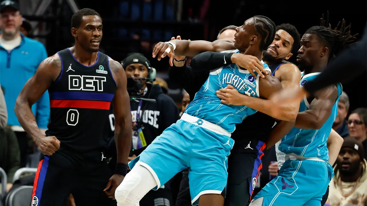 La NBA informó que los aleros de los Hornets Miles Bridges y Moussa Diabaté fueron suspendidos cuatro encuentros cada uno por pelear y por agravar el altercado, mientras que el pívot de los Pistons Jalen Duren recibió dos juegos de sanción por iniciar el altercado y pelear.