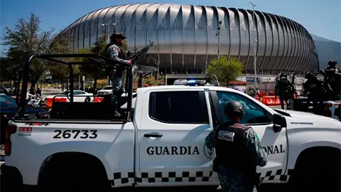 La Guardia Nacional y patrullas apoyan el blindaje del estadio BBVA para el repechaje mundialista.