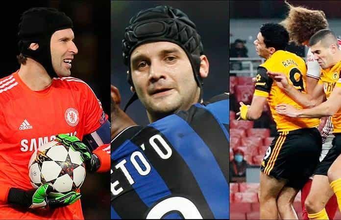 El portero de la República Checa, Petr Cech, uno de los mejores en la Liga Premier en los últimos tiempos, chocó, mientras jugaba con el Chelsea contra el volante Stephen Hunt del Reading. El portero sufrió fractura de cráneo con hundimiento. Era octubre de 2006. En enero de 2007 el guardameta regresó usando como protección un casco de rugby. En 2019 se retiró pero este año fue dado de alta por el Chelsea debido a la falta de porteros por el Covid-19.