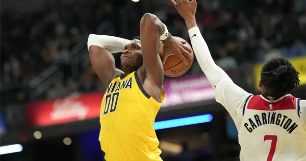 Bennedict Mathurin sumó 20 unidades, y T.J. McConnell tuvo 14 y ocho asistencias para ayudar a Indiana a poner fin a una racha de tres derrotas consecutivas y mejorar su récord a 3-16. Washington cayó a 2-16, reemplazando a los Pacers en el último lugar.