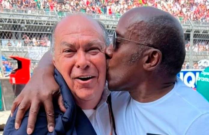 Padre de "Checo" Pérez recibe beso del papá de Lewis Hamilton