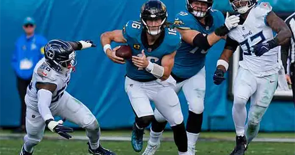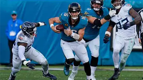 JACKSONVILLE.- Trevor Lawrence lanzó tres pases de touchdown, rompiendo el récord de la franquicia de anotaciones totales en una sola temporada, y los Jaguars de Jacksonville ganaron un partido de playoffs en casa con una aplastante victoria de 41-7 sobre Tennessee el domingo. Fue el resultado más desigual en la historia de la serie.