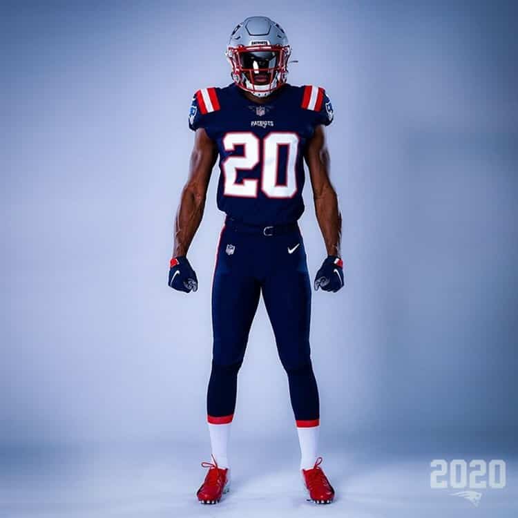 Los Patriotas introdujeron uniformes azules sobre azul como su camiseta alternativa Color Rush hace varios años y ahora los han adoptado como su uniforme de casa. Hay ajustes en los números y nombres, pero el aspecto general es el mismo que se les ha visto en los últimos años.