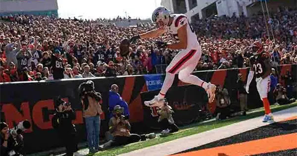 CINCINNATI.- Drake Maye pasó para 294 yardas y un touchdown, Marcus Jones devolvió una intercepción 33 yardas para anotar y los Patriots de Nueva Inglaterra, líderes de la AFC, remontaron un déficit de diez puntos y extendieron su racha ganadora a nueve con una victoria de 26-20 sobre los Bengals de Cincinnati el domingo.