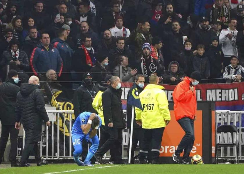 En a jornada más reciente opacada por la violencia de los aficionados, un partido en Lyon fue suspendido cuando se hallaba empatado sin goles cuando el volante del Marsella Dimitri Payet fue golpeado en la cabeza con una botella de agua lanzada desde las gradas cuando se disponía a cobrar un tiro de esquina.