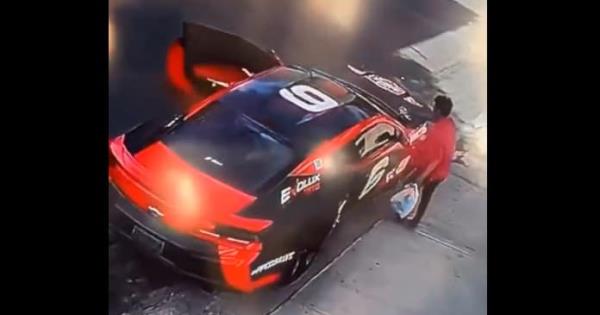 Un video revela cuando el hombre se acerca a un automóvil deportivo y con una lata de pintura comienza a pintar los cristales.