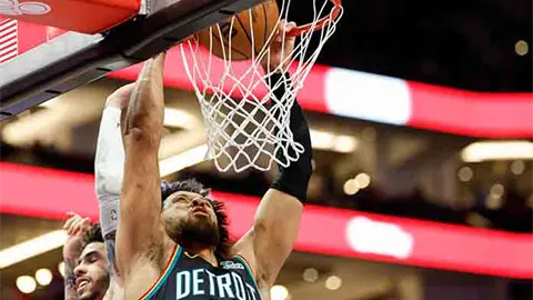 CHARLOTTE.- Jalen Duren anotó 20 puntos, Duncan Robinson sumó 19 y los Pistons de Detroit arrollaron el viernes 118-100 a los Hornets de Charlotte, quienes quedaron resignados a disputar el minitorneo de repesca play--in.