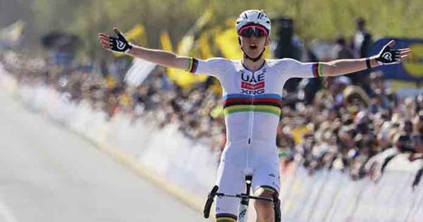OUDENAARDE.- Con otro ataque fulminante, el campeón del mundo Tadej Pogacar ganó el domingo el Tour de Flandes por segunda vez.
