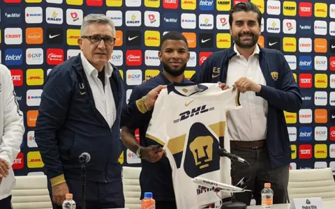 Pedro Vite fue presentado en las instalaciones de La Cantera como nuevo futbolista de los Pumas. El tercer fichaje ya cayó y todavía faltan dos por ser anunciados (portero y atacante).