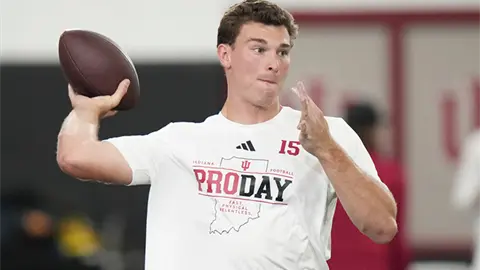 El joven de origen cubano fue pasador con los Hoosiers de Indiana, donde en su última temporada tuvo récord de 16-0, convirtiéndose en el primer equipo de la era moderna en lograrlo y el segundo en toda la historia del futbol americano colegial; además, ganó el trofeo Heisman, otorgado al mejor jugador universitario en Estados Unidos, después de firmar tres mil 535 yardas por aire, 41 pases de touchdown y solamente seis intercepciones. En Las Vegas, lo espera el mítico Tom Brady, dueño minoritario del equipo.