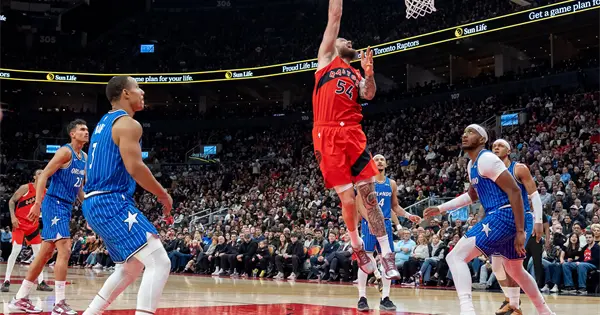 Sandro Mamukelashvili anotó 19 unidades y Jamal Shead aportó 12 y 10 asistencias para los Raptors (42-32), que se mantuvieron quintos en la clasificación de la Conferencia Este tras su victoria más amplia de la temporada. Los seis primeros equipos avanzan automáticamente a los playoffs.