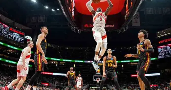 Con una desventaja de 13 puntos en el segundo cuarto, Toronto tomó la delantera 82-81 con una bandeja de Scottie Barnes a mitad del cuarto. Immanuel Quickley encestó un triple para poner el marcador 85-81 y los Raptors se alejaron en el inicio de un viaje de cinco partidos.