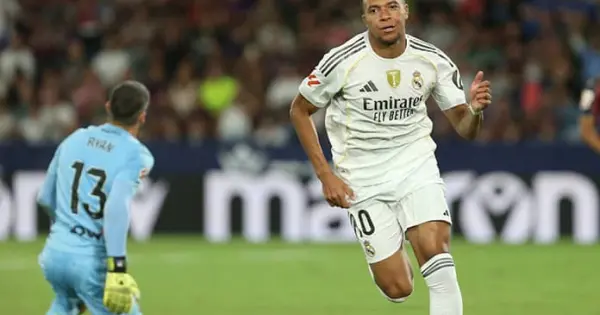 MADRID.- Kylian Mbappé firmó un doblete en un lapso de tres minutos y el adolescente argentino Franco Mastantuono se estrenó como goleador con el Real Madrid en la victoria el martes 4-1 como visitante ante Levante en La Liga española, un resultado que extendió el inicio perfecto del club en la temporada.