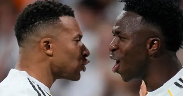 Vinícius anotó desde el punto de penal al 69 después de ser derribado. Mbappé es el habitual lanzador de penales del Madrid, pero cedió el honor, y Vinícius coló un disparo flojo bajo el cuerpo de Tenas mientras este adivinaba correctamente.