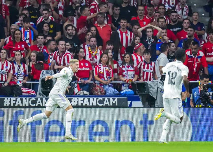 Rodrygo Goes mandó a las redes un soberbio remate de botepronto para guiar al Real Madrid a la victoria 2-1 sobre el Atlético de Madrid, para mantener el paso perfecto en La Liga española y la temporada.