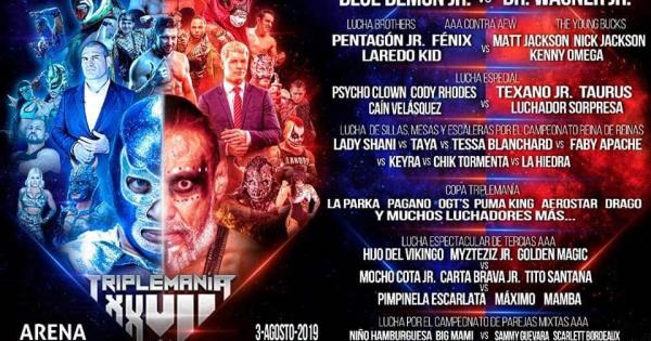 Antes, en luchas de sillas, mesas y escaleras con el trofeo "Reina de Reinas" en juego, la campeona Keyra se medirá con Lady Shani, Tessa Blanchard, Faby Apache, Chik Tormenta y la Hiedra. Mientras que la Copa Triplemanía la disputarán la Parka, Pagano, OGT’S, Puma King, Aerostar y Drago, entre otros.