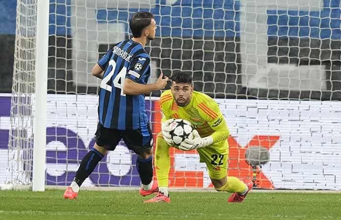 La doble intervención preservó el empate 0-0 con el Atalanta en la primera ronda del renovado torneo europeo y dejó en claro las cualidades como atajador por parte de un portero que es más conocido por su habilidad con el balón a sus pies.