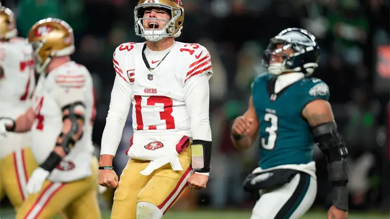 En cambio, en la siguiente jugada Brock Purdy conectó con Jauan Jennings para 45 yardas para preparar un gol de campo que ayudó a los 49ers, con personal limitado, a vencer en la ronda de comodines por 23-19 a los Eagles de Filadelfia, campeones defensores del Super Bowl.