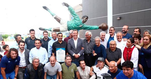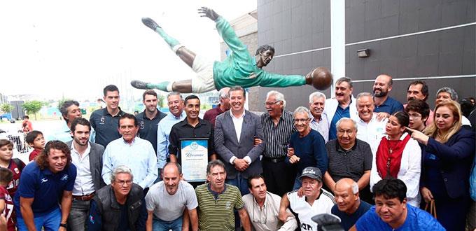 Ciudad de México.- El gobernador de Guanajuato, Miguel Márquez inauguró una unidad deportiva en el municipio de Purísima del Rincón en donde develó una escultura del histórico exportero mexicano, Antonio Carbajal.
