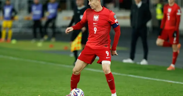 Lewandowski anotó el segundo gol de Polonia en la victoria del domingo 2-0 sobre Lituania en la clasificación europea para la Copa del Mundo 2026. El delantero jugó todo el partido.