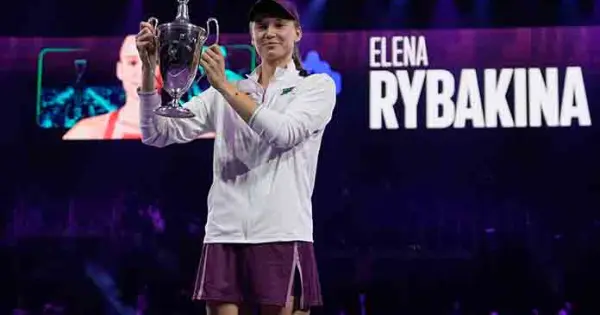 RIYADH.- Elena Rybakina ganó el sábado las Finales de la WTA después de una actuación casi impecable para vencer a Aryna Sabalenka, número uno del mundo, por 6-3, 7-6 (0).
